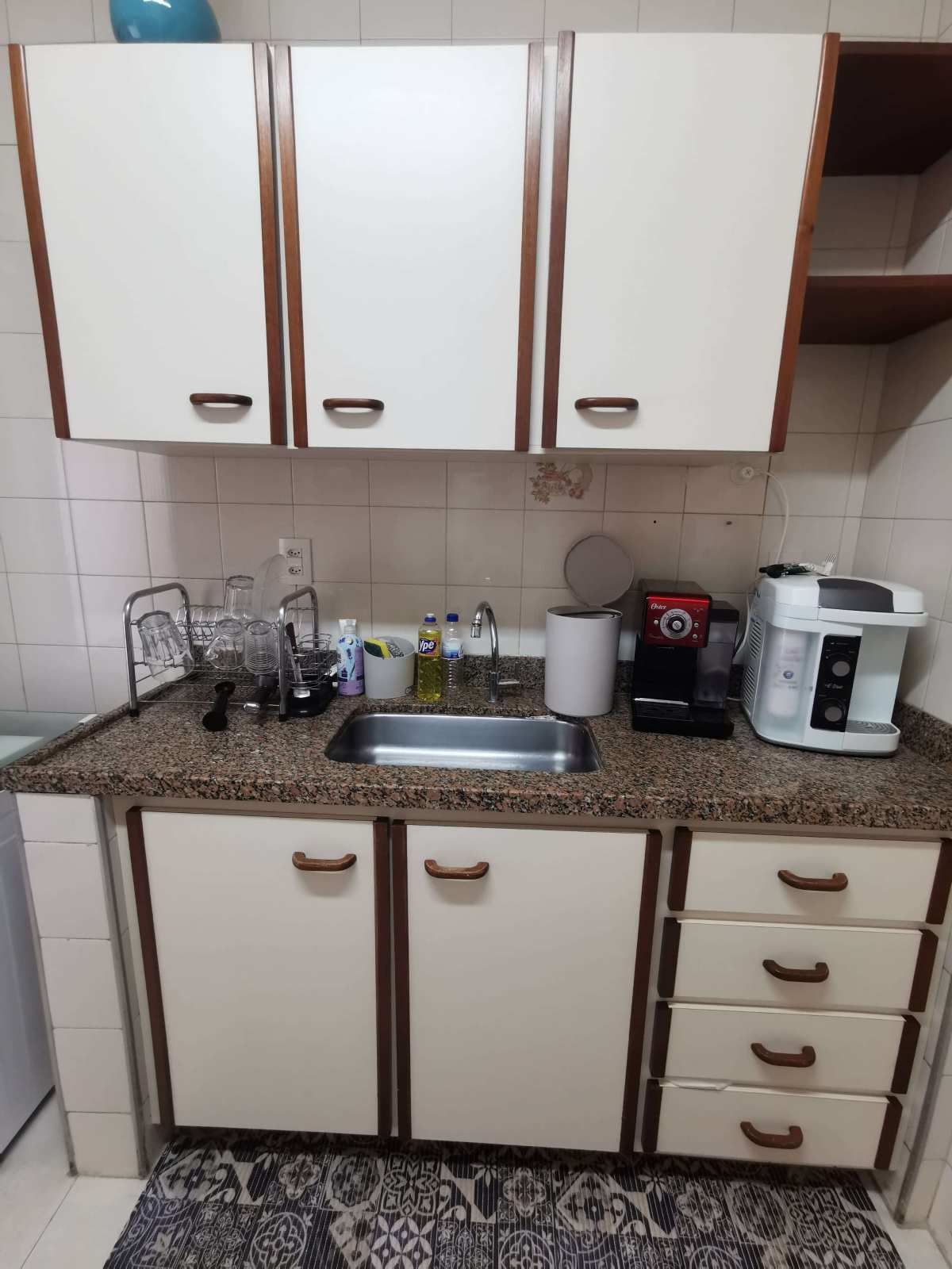 ? Cozinha espaçosa com muitos armários e face sombra