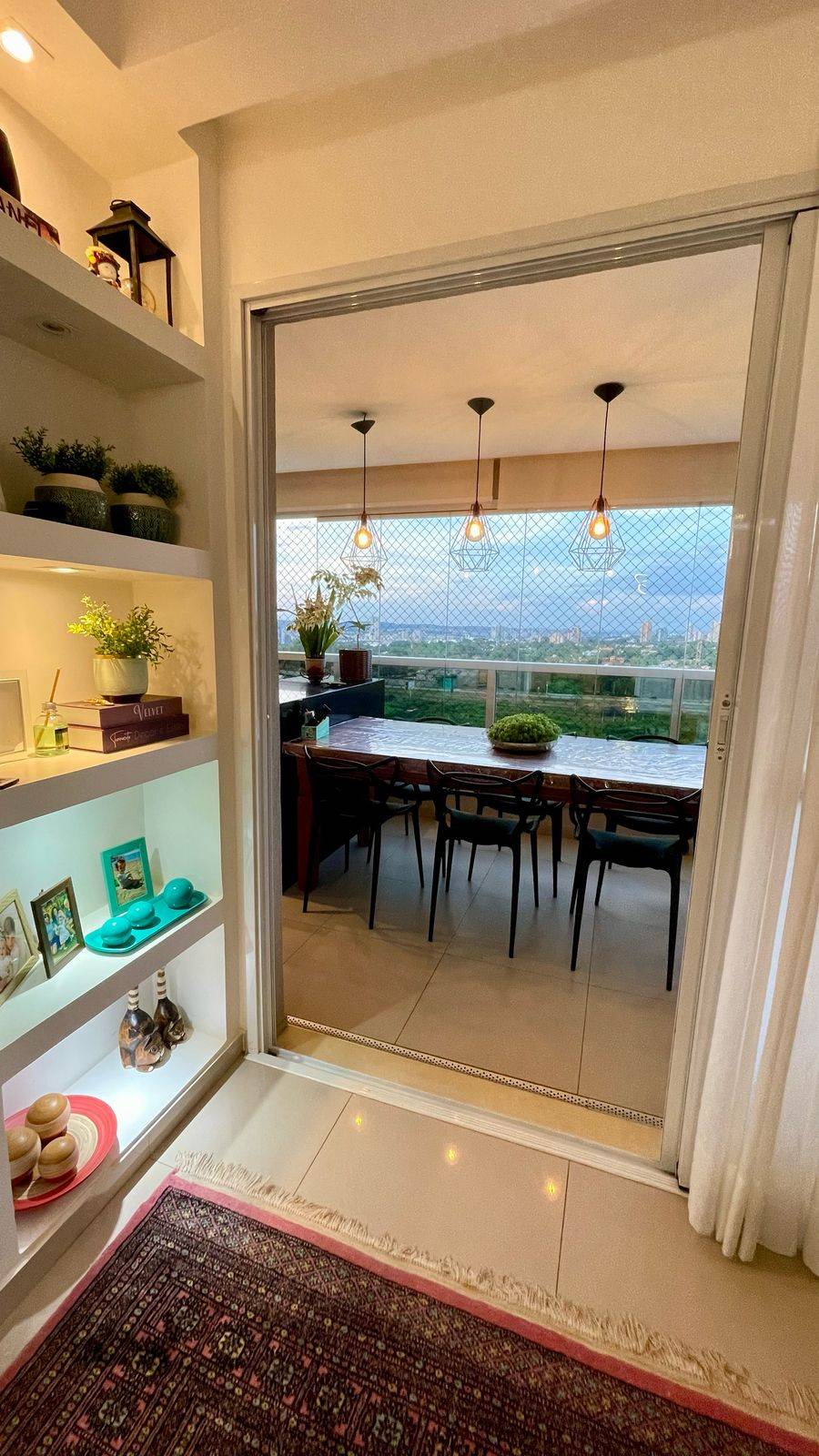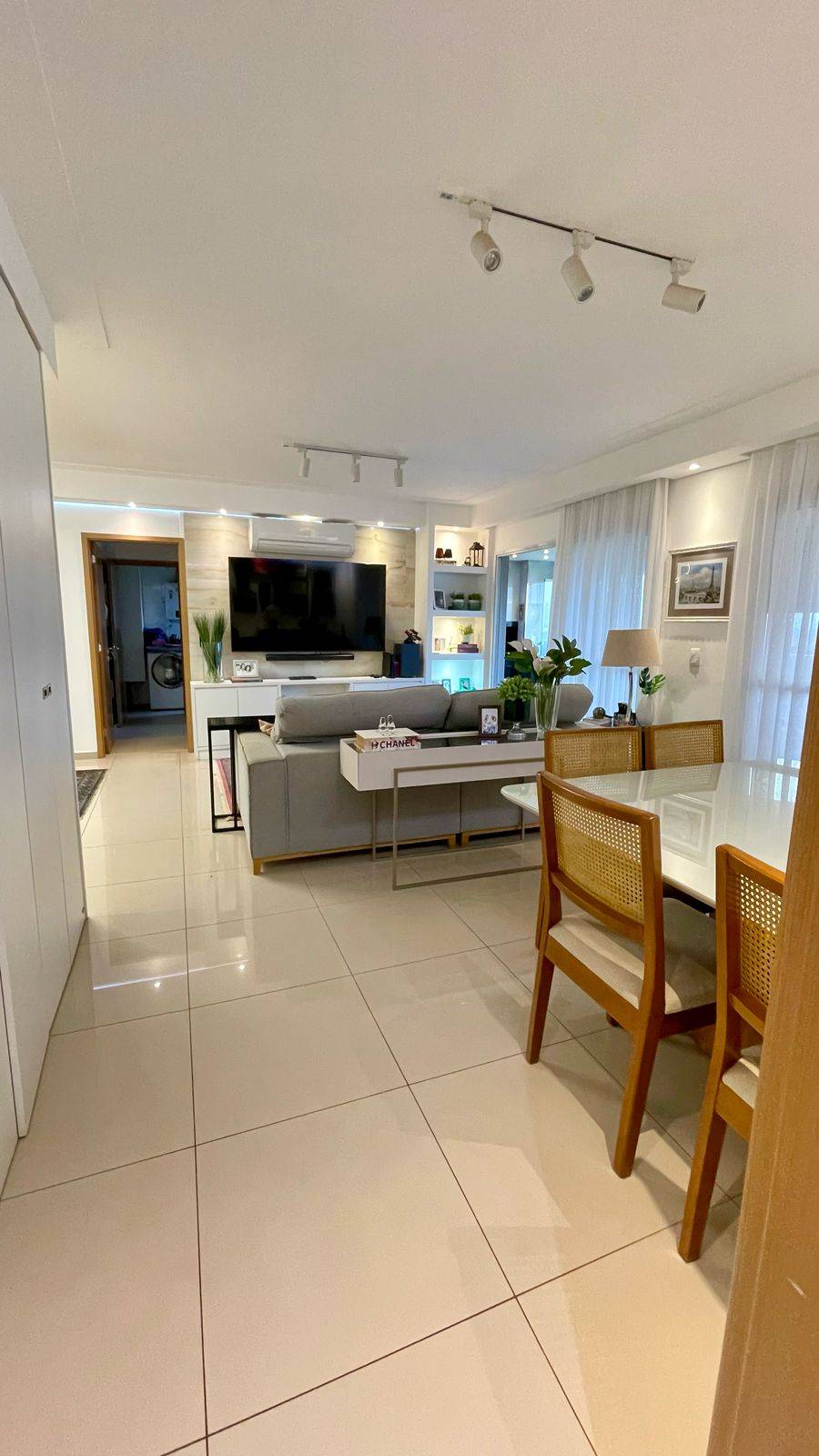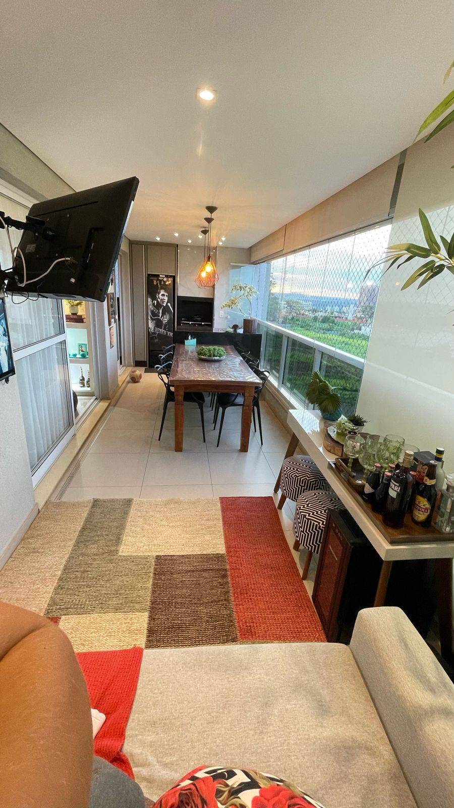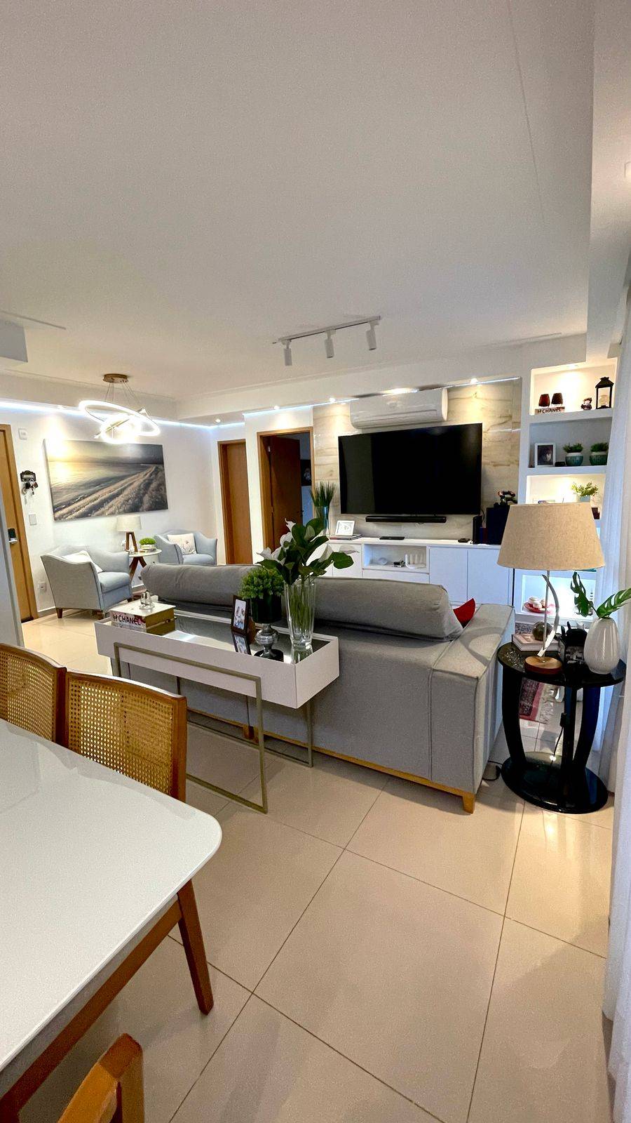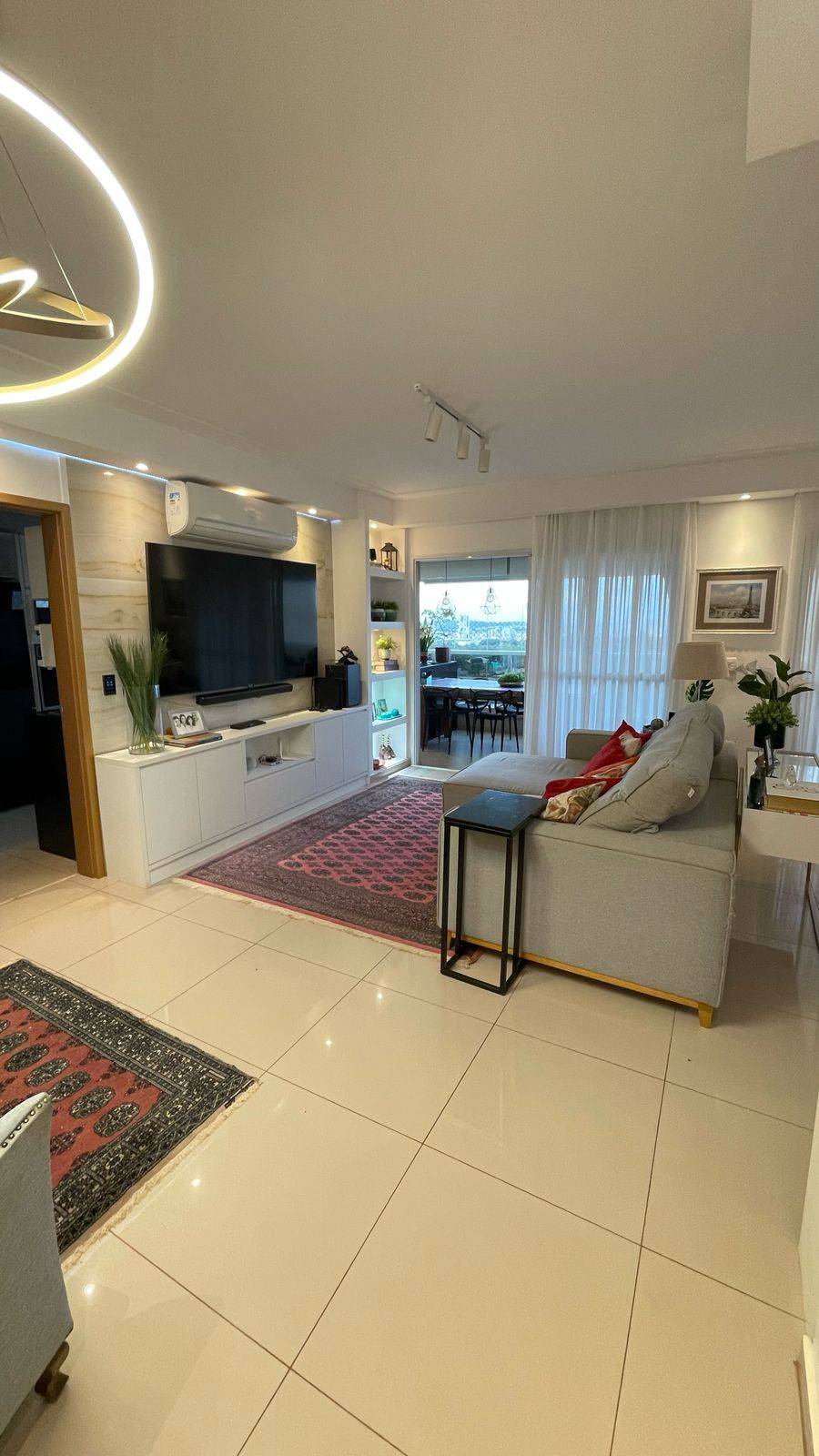Sala: Sala ampla com 3 ambientes, ar condicionado split, painel e roupeiro da Ornare, além de uma espaçosa varanda gourmet fechada em vidro.