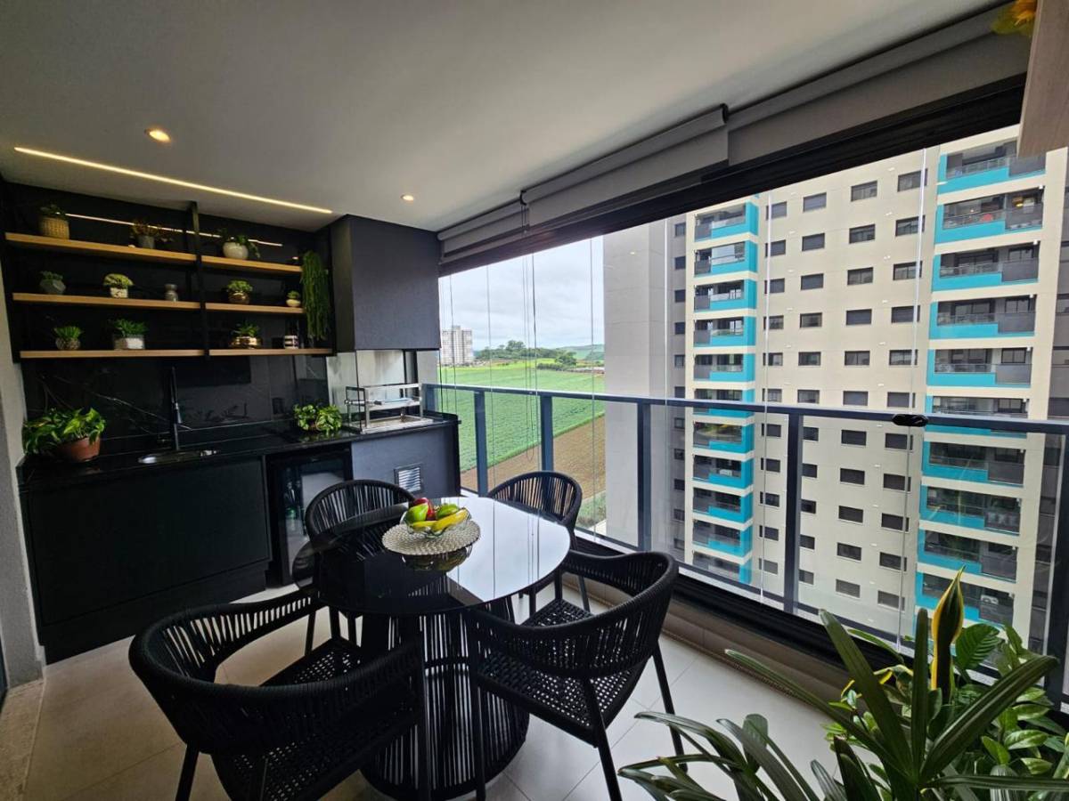 - Sacada gourmet com churrasqueira, perfeita para lazer e recepção de amigos e familiares.