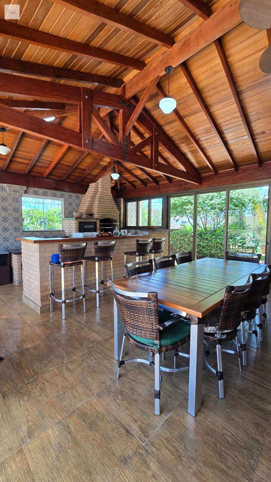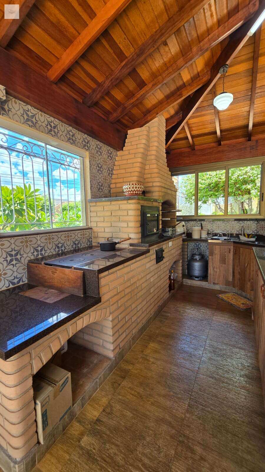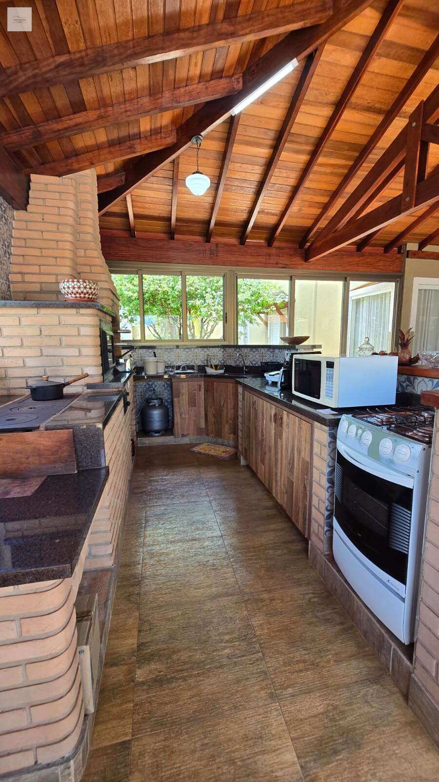 Área gourmet completa e fechada, com churrasqueira, forno e fogão a lenha