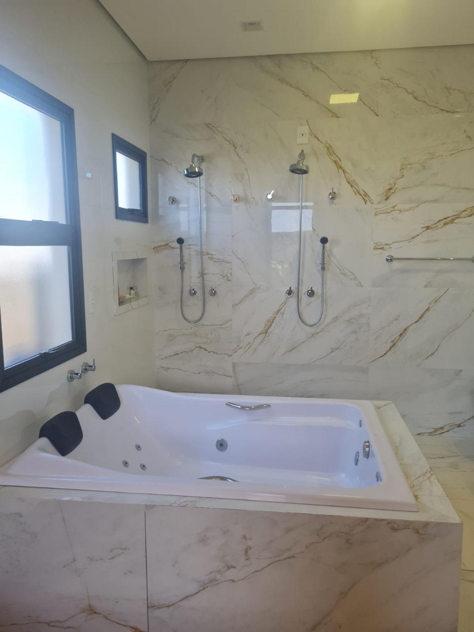 - Suíte Master com closet, banheira de hidromassagem, chuveiro e cuba duplos.
